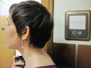 Stephanie Bonjack defies the somewhat outdated stereotype of a librarian. She looks as if she might be the art director of a magazine or work at an art gallery. And if I thought most librarians were recluses, her favorite part of the job is interacting with students. I might like to follow the idea that Stephanie defies the old-timey stereotype of a librarian. Poking around her office, I found an Obama sticker, Shepard Fairey art and a record with Maria Callas’ face. Stephanie said some interesting things I could follow up on; that the library is starting to offer more popular music books. She said this is good and she thinks there should be more expansion in these areas because only including classical materials gives the library a sense of “false elitism.” I took some shots of hip-hop and jazz books, etc. I also saw two other librarians – both were fashionable like Stephanie. Stephanie remarked that her department boasts fashionable people. It might be fun to have the male and female librarians in the music department talk about their fashion choices. I could interview 2-4 of them about fashion and take pictures of them in the library environment. I would have to take more photos tomorrow and conduct not one but a few interviews, but this could be fun!