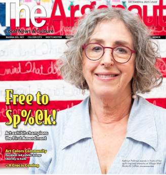 Pellman tapped two other SoCal artists, Kelly Hartigan Goldstein and MartyO, to show their work addressing the themes of censorship, free speech and democracy. Alarmed by the growing assault on free expression and the censorship taking root in the United States, they have joined forces to resist through art, according to Pellman, and they launched the exhibit on Oct. 3 to coincide with the American Library Association’s annual Banned Books Week (Oct. 4–11).